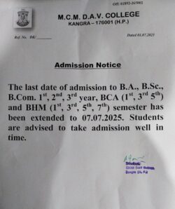 Admission date for UG Courses extended up to 07/07/2025